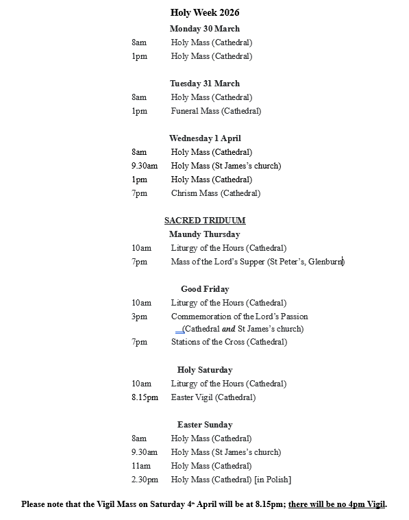 Here, you can find out the times of Masses and services. The latest parish and diocesan news can be found on our Bulletin Notices page. You can find out more about our history and our serving clergy here.